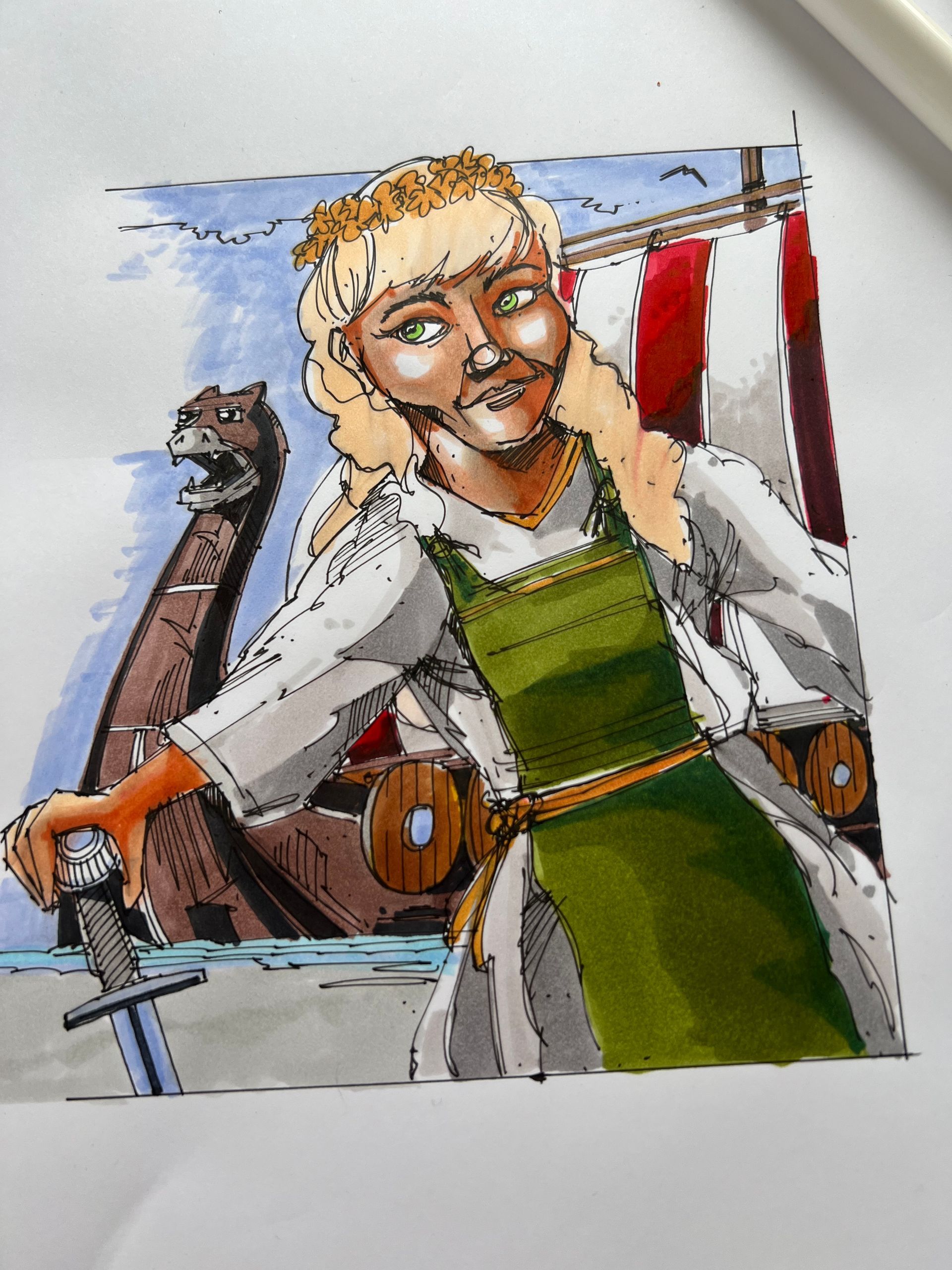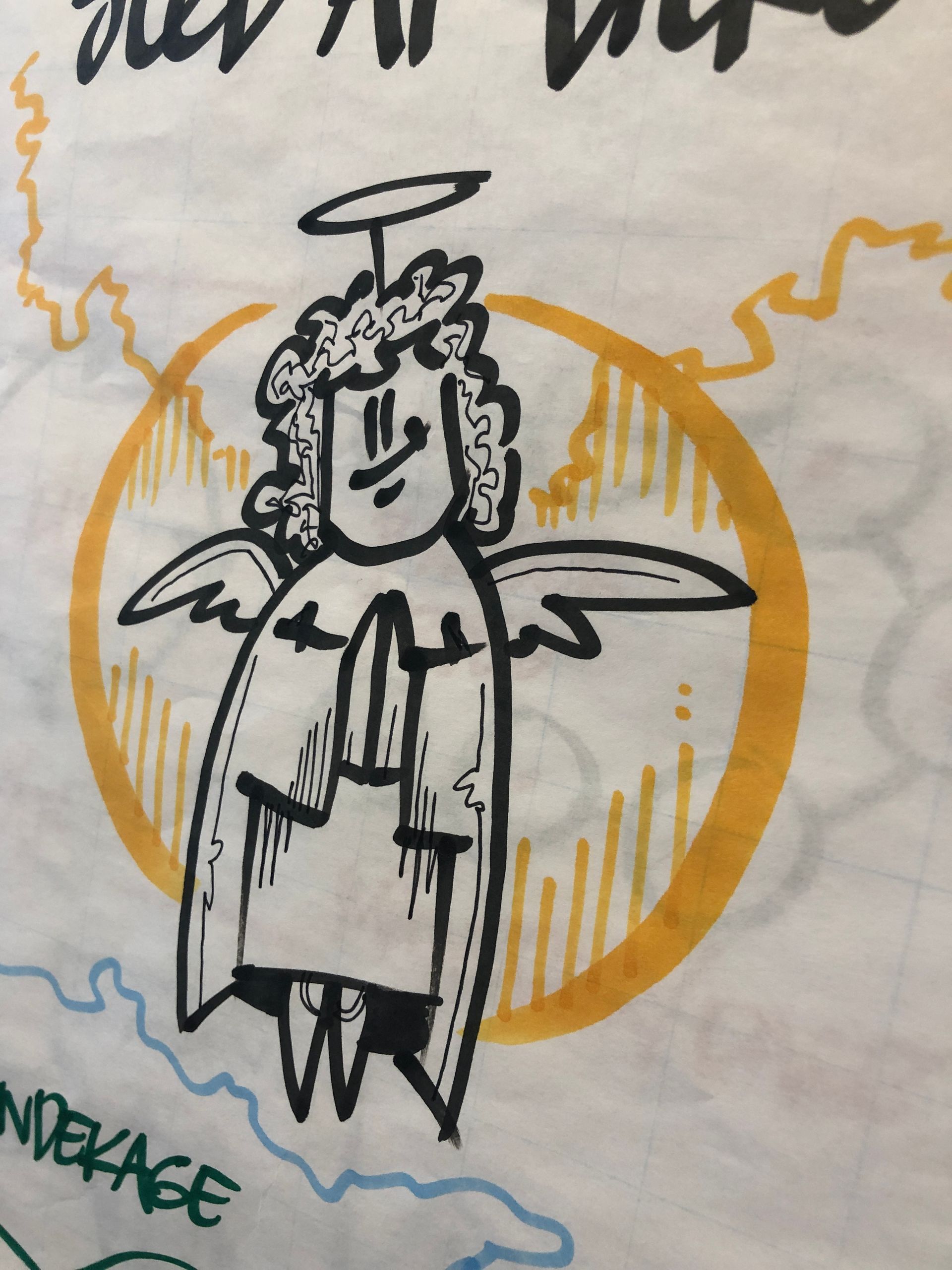 en tegneserietegning af en markør med ordet Frank Høedt skrevet på.